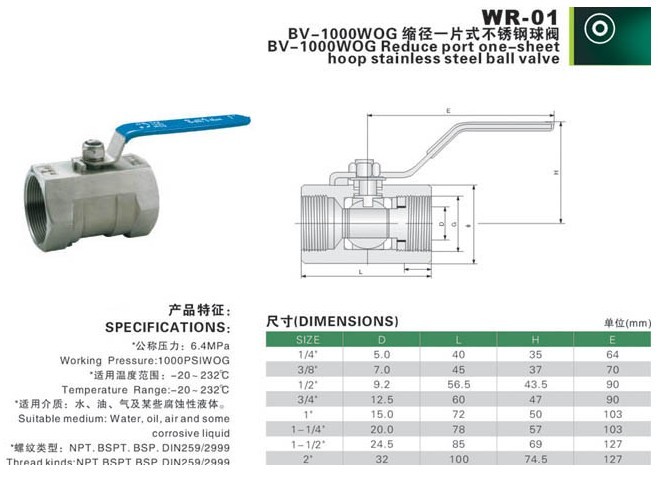 Q11F一片式丝口球阀